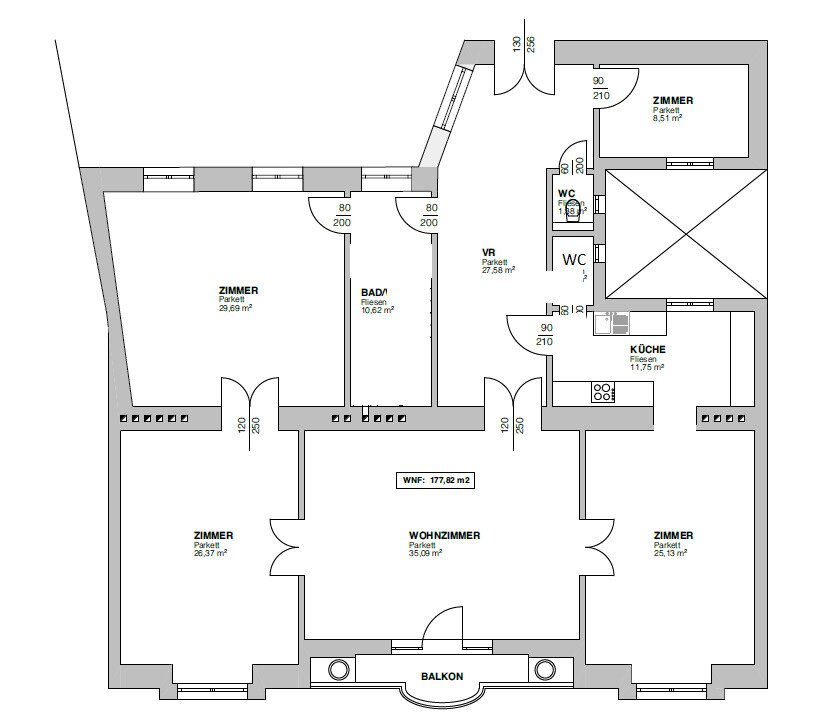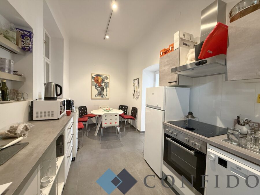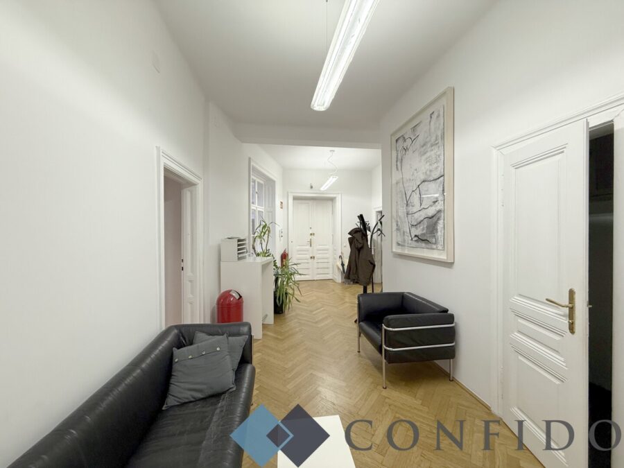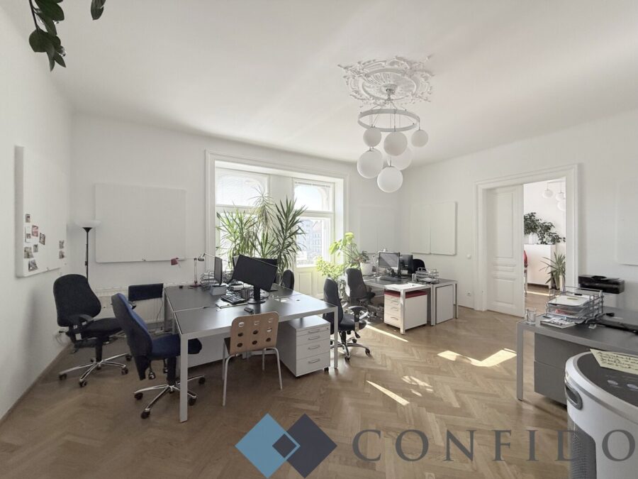 Direkt beim Naschmarkt gelegen, gelangt diese wundervolle, rund 175m² große 4,5 Zimmer - Bürofläche zur befristeten Vermietung. Sie liegt im 1. Liftstock eines im Jahr 1896 erbauten Hauses und weiß zu überzeugen. Das Büro weiß absolut zu überzeugen. Über den sehr geräumigen Vorraum, der einen idealen Empfangsbereich darstellt, gelangen Sie direkt in das Herzstück des Büros - den zentralen, rund 35m² große Büroraum mit Ausgang auf den knapp 2m² großen Balkon. Auf beiden Seiten des Zimmers finden Sie angrenzend jeweils einen weiteren großen Raum. Die ausgestattete Küche sowohl über ein Zimmer, als auch über den Vorraum zu betreten. Das Badezimmer ist mit einer Badewanne ausgestattet sein. Ein weiterer knapp 30m² großer Raum, ist komplett hofseitig ausgerichtet und würde sich z.B. als Besprechungszimmer eigenen. Ein rund 8m² großes Kabinett sowie die 2 separaten Gästetoiletten komplettieren das Angebot.