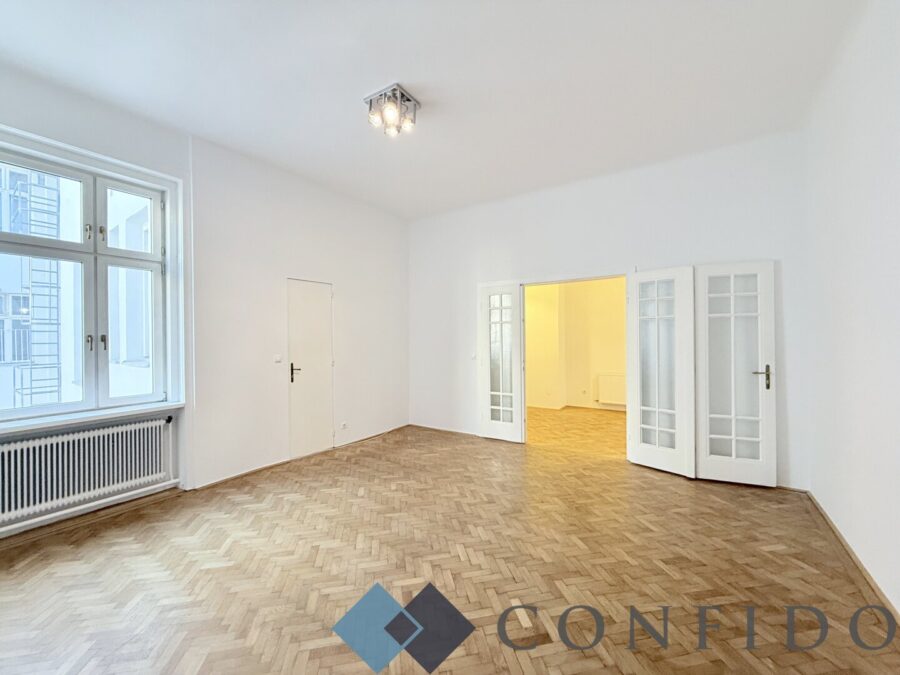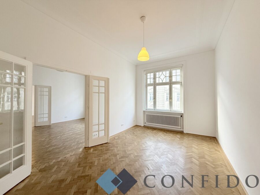 Zur befristeten Vermietung gelangt dieses großzügige, ca. 190m² große Wohnung in großartige Lage -unmittelbar beim Alten AKH. Sie liegt im 3. Liftstock eines sehr gepflegten Hauses. Wunderschöne Parkettböden, stilgerechte Doppelflügeltüren, grandiose Raumhöhen - hier werden sämtliche altbautypischen Kriterien erfüllt. Die Immobilie verfügt über 5 separat zu begehende Zimmer, die eine Größe zwischen 20m² und 30m² haben. Neben der vollausgestatteten Küche ist noch ein Esszimmer mit Balkon. Im größeren Badezimmer befindet sich eine Badewanne und eine Toilette - im kleineren Badezimmer ist eine Toilette mit einer Dusche. Der großzügige Vorraum mit genügend Platz für Stauraum, komplettiert das attraktive Immobilienangebot.