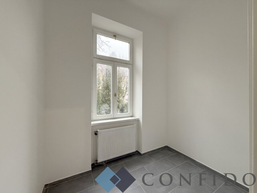 Die Wohnung liegt im 1. Stock (ohne Aufzug) eines gepflegten Altbaus. Über den geräumigen Vorraum sind idealer Weise fast alle Räumlichkeiten separat zu betreten. Im straßenseitigen Bereich der Wohnung befinden sich 2 große, südlich ausgerichtete Zimmer, wo Sie genügend Platz für Ihre Einrichtungsideen finden. Das geschmackvoll verflieste Badezimmer wurde mit einer Badewanne und einem Waschtisch versehen. Das 3. Zimmer hat eine gute Größe, einen extra Schrankraum und verfügt über eine verglaste und gartenseitig ausgerichteten Veranda, die viele Nutzungsmöglichkeiten bietet. Sowohl von dem Küchenraum mit neuer ausgestatteter Küche mit angrenzendem Essbereich/Speis als auch von der verglasten Veranda hat man einen herrlichen Grünblick über den wundervollen Garten. Der praktische Abstellraum sowie die separate Toilette komplettiert das attraktive Immobilienangebot.