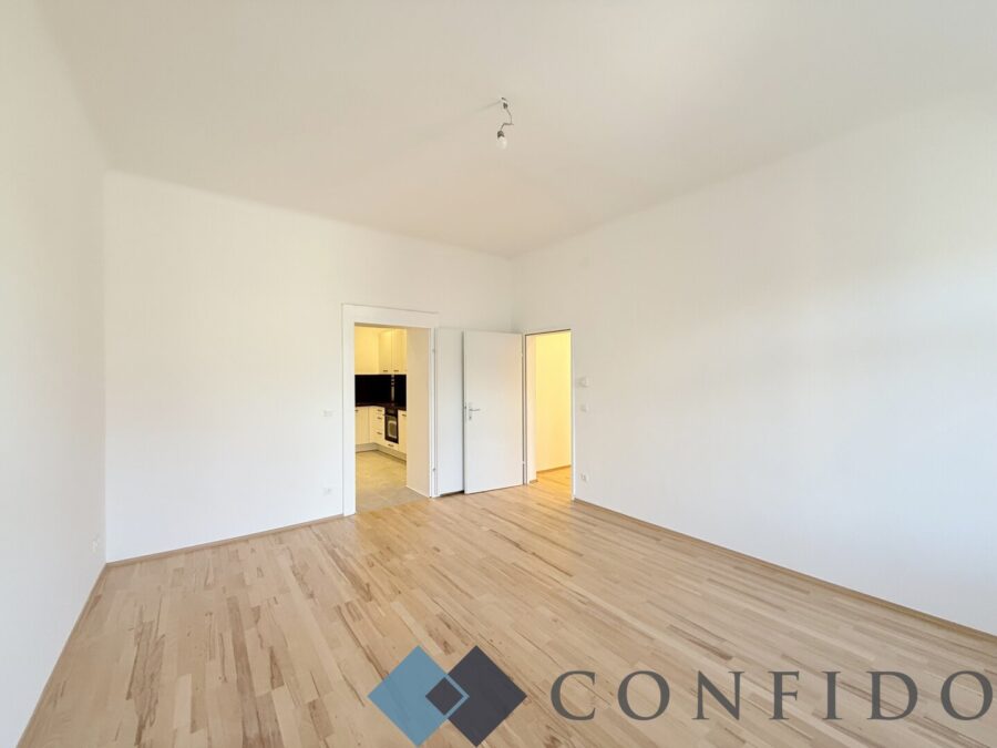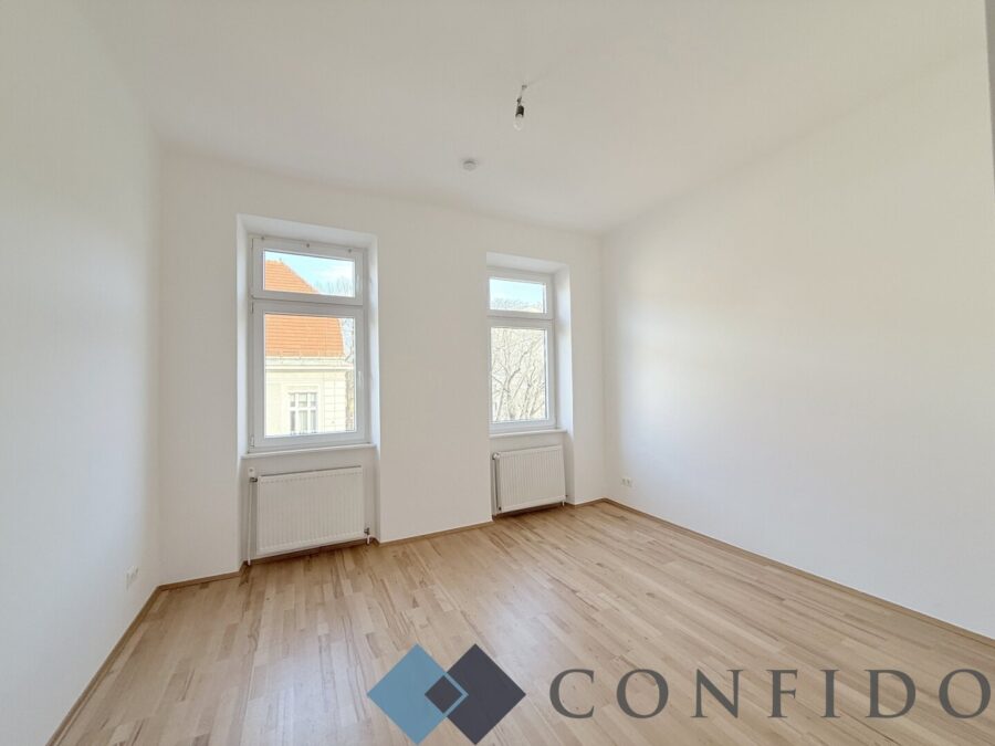 Die Wohnung ist ein Erstbezug nach Sanierung und befindet sich im 2. Stock (ohne Aufzug) eines gepflegten Altbaus und überzeugt durch eine durchdachte Raumaufteilung sowie entsprechende Ausstattung.Über den zentralen Eingangsbereich gelangt man in den Vorraum, von dem aus die 3 gut geschnittenen Zimmer direkt begehbar sind. Das großzügige Wohnzimmer bietet viel Platz zum Wohlfühlen - angrenzende befindet sich der Küchenraum mit einer modernen, ausgestatteten Küche. Die beiden weiteren Schlafzimmer verfügen über eine angenehme Größe und bieten ausreichend Stauraum für individuelle Bedürfnisse. Das geschmackvoll ausgestattete Badezimmer ist sowohl mit einer Badewanne als auch mit einer Dusche versehen und lässt keine Wünsche offen. Die separate Toilette komplettiert das Immobilienangebot.