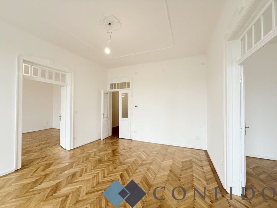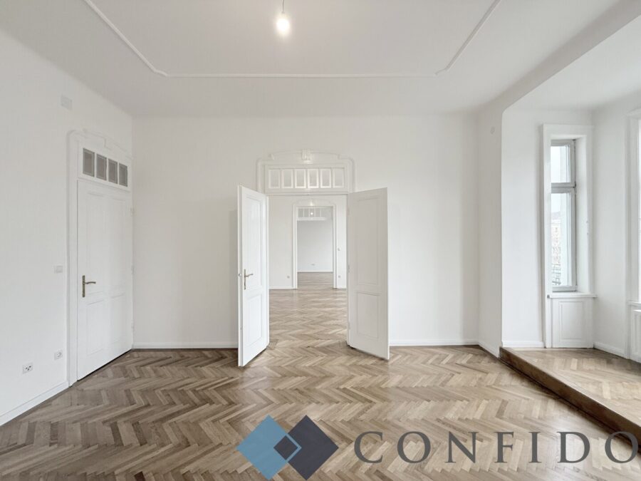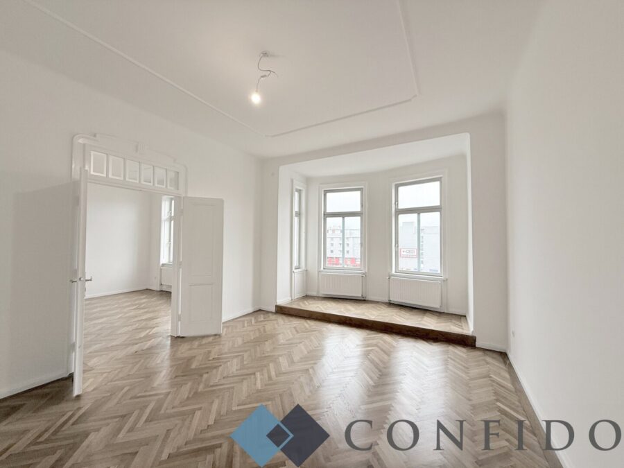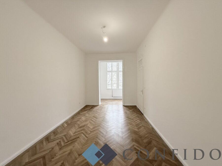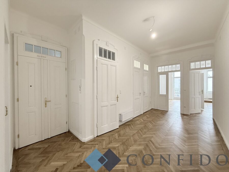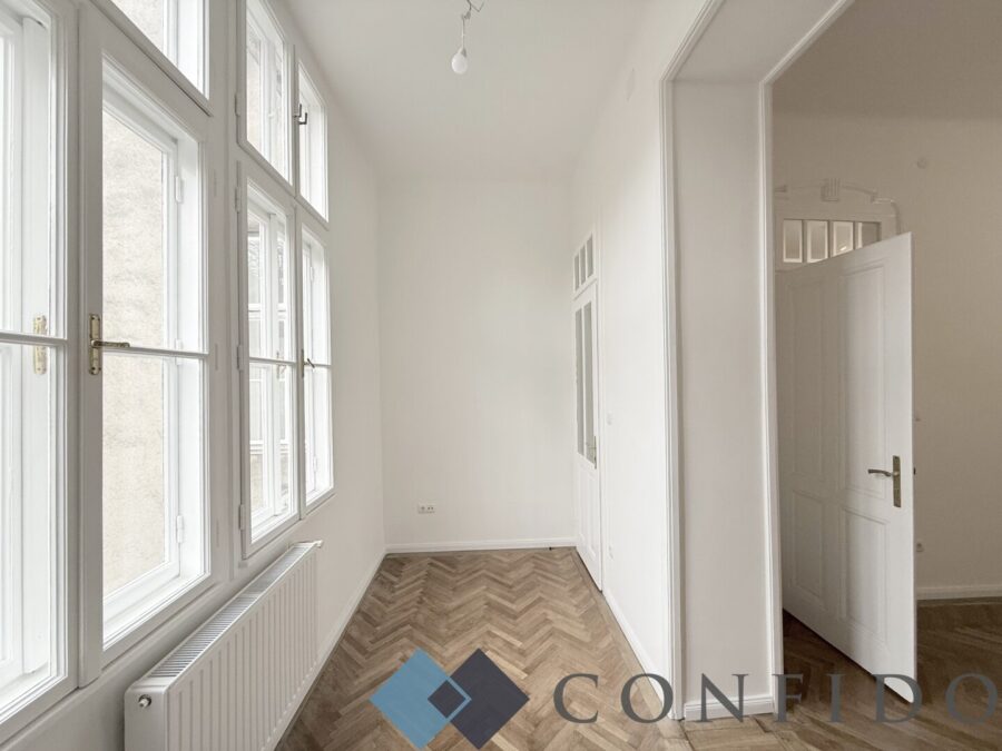 Tolle Raumhöhen, wunderschön revitalisierter Echtholzparkettboden und ein altbautypischer, großzügiger Grundriss und eine hofseitig verglaste Veranda.