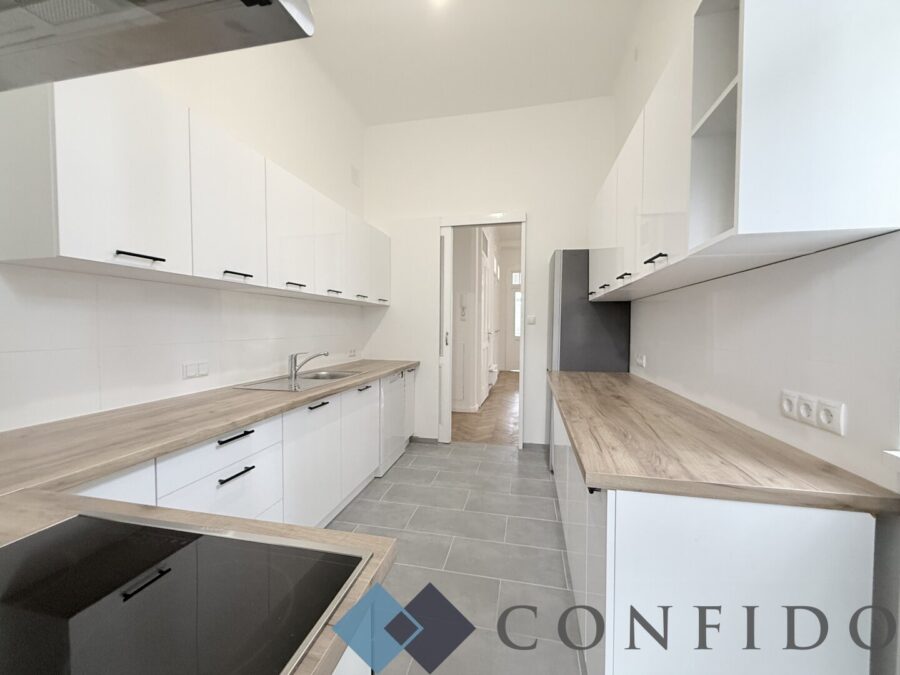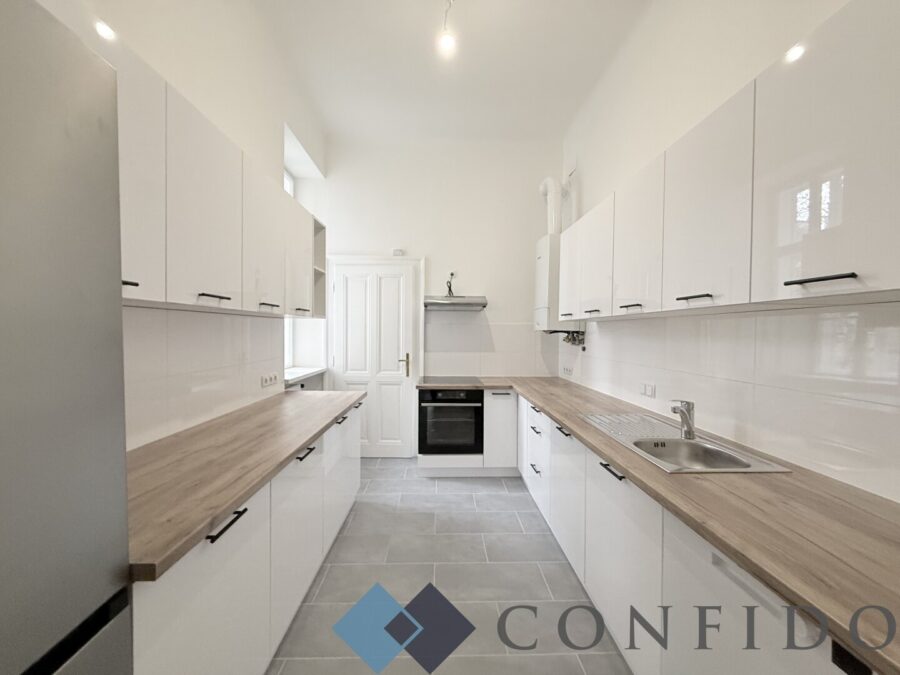 Die Wohnung liegt im 2. Stock (ohne Aufzug) eines gepflegten Altbaus. Über den geräumigen Vorraum sind idealer Weise fast alle Räumlichkeiten separat zu betreten. Im straßenseitigen Bereich der Wohnung befinden sich 3 große, südlich ausgerichtete Zimmer, wo Sie genügend Platz für Ihre Einrichtungsideen finden. Die beiden äußeren Zimmer verfügen jeweils über einen Erker, das mittlere Zimmer hat einen netten, rund 2m² großen Balkon. Das geschmackvoll verflieste Badezimmer wurde mit einer Dusche, Waschmaschinenanschluss und einem Waschtisch versehen. Das 4. Zimmer hat eine tolle Größe verfügt über eine verglaste und gartenseitig ausgerichteten Veranda, die viele Nutzungsmöglichkeiten bietet. Sowohl von dem Küchenraum mit neuer ausgestatteter Küche mit angrenzendem Essbereich/Speis als auch von der verglasten Veranda hat man einen herrlichen Grünblick über den wundervollen Garten. Der praktische Abstellraum sowie die separate Toilette komplettiert das attraktive Immobilienangebot.